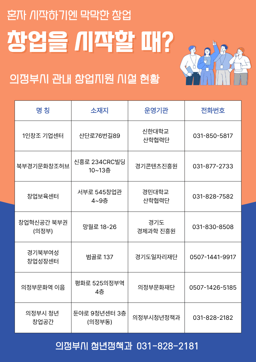 의정부시 관내 창업지원 시설 현황(2026. 2. 기준)