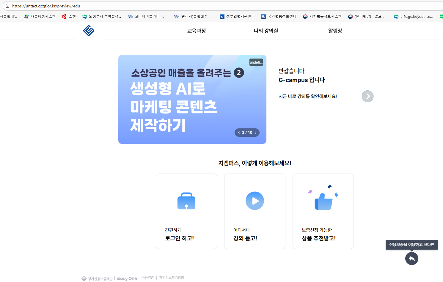 ↳ 링크: 경기신용보증재단(https://www.gcgf.or.kr)-G-캠퍼스 소상공인 교육 신청