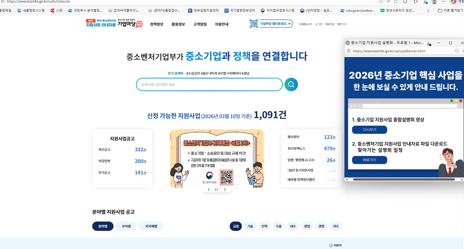 중소벤처기업부 주관 중소기업 정책 안내 사이트(기업마당) 안내 드립니다.