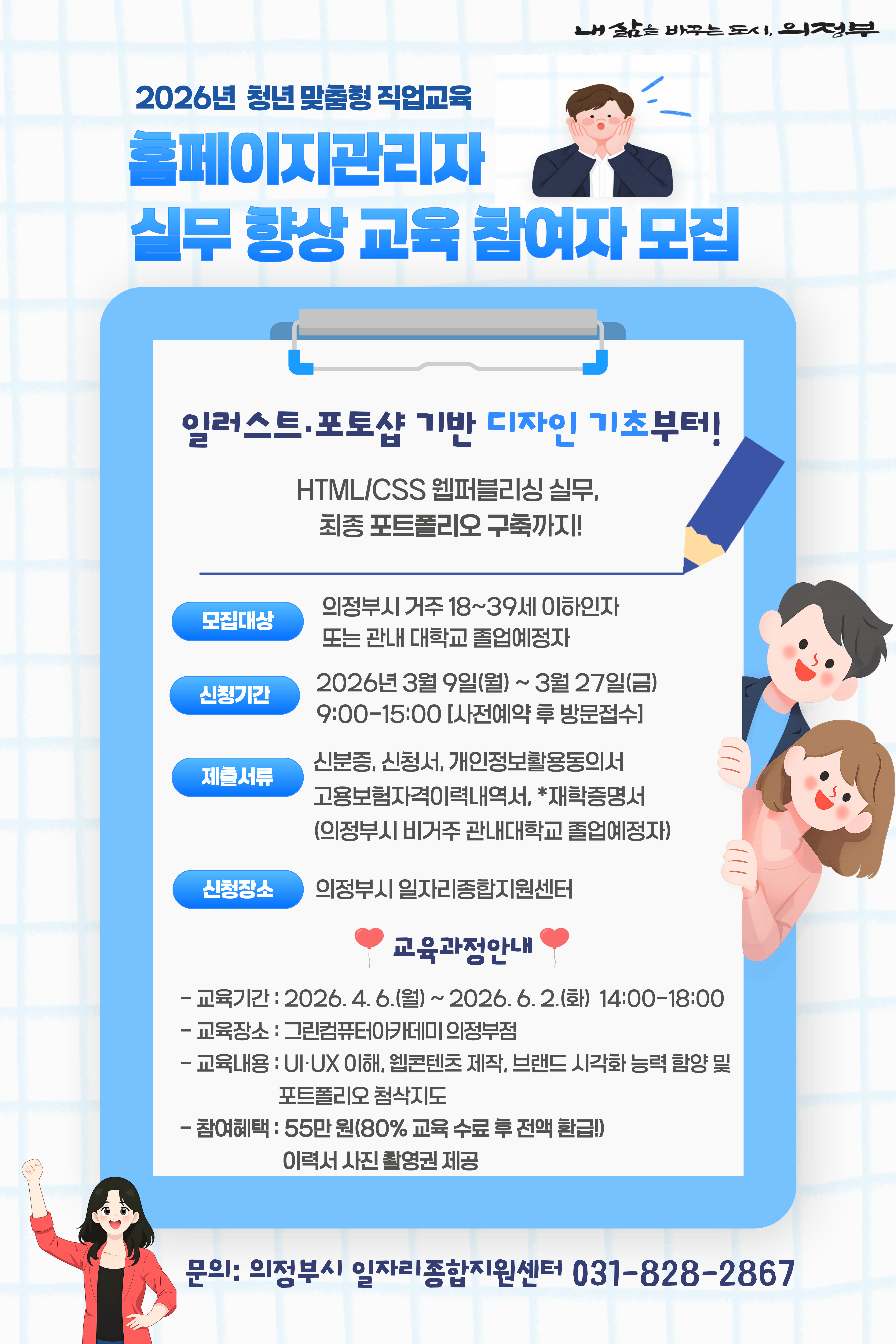 2026 청년 맞춤형 직업교육 "홈페이지관리자 실무 향상 교육" 참여자를 모집합니다.