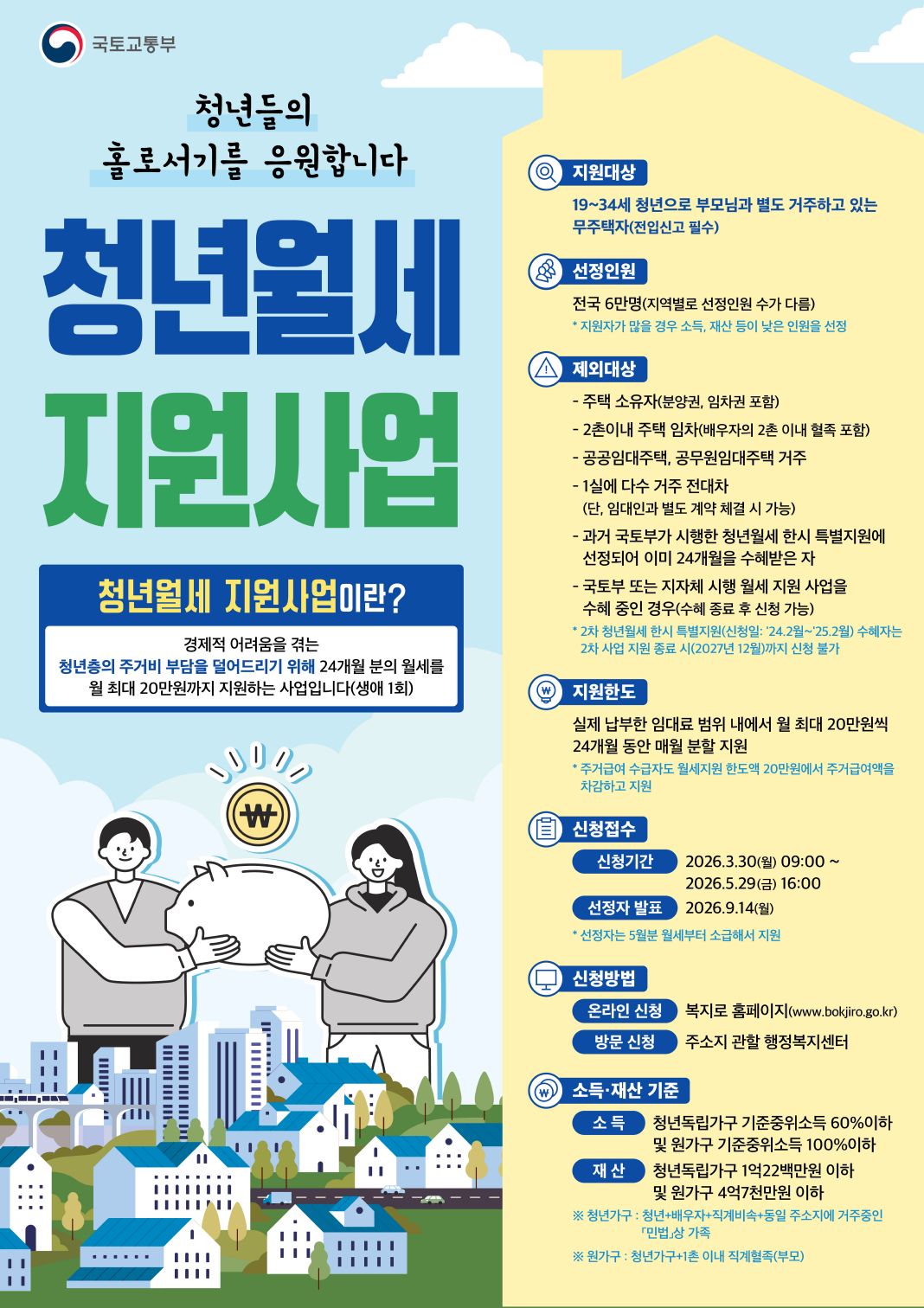 ∘ 지원대상: 19~34세 부모님과 별도 거주하는 무주택 청년