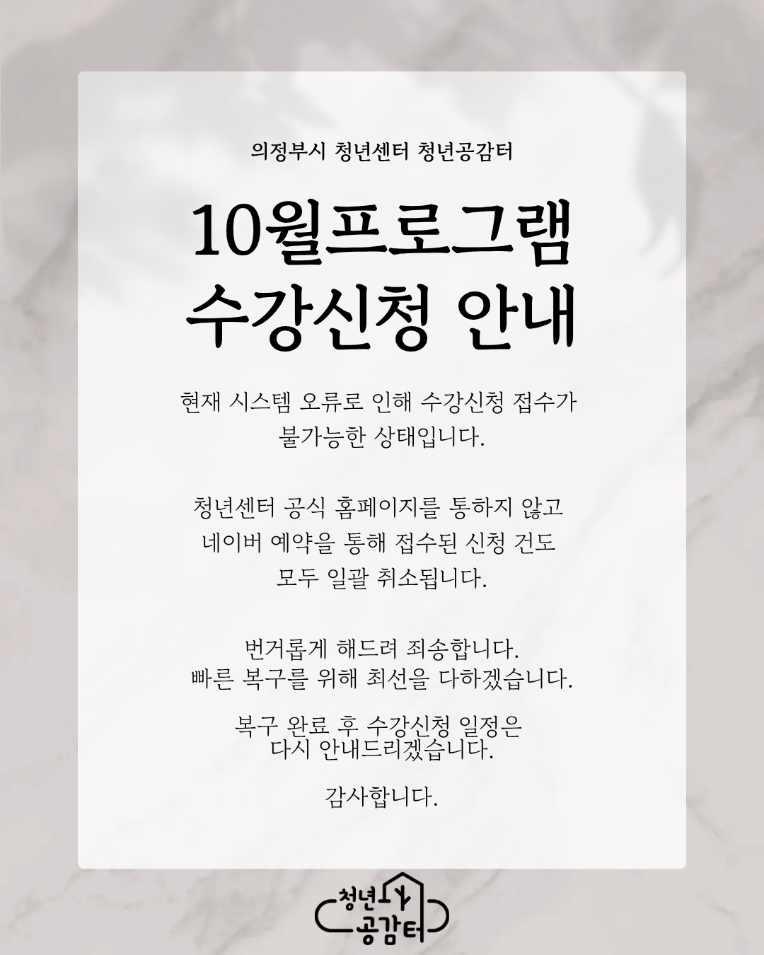 청년센터 프로그램에 관심 가져주셔서 늘 감사드립니다.